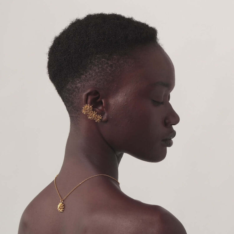 This particular pendant can be worn with the matching dangle earring, the cuffs or the stud earrings, or the "blooming flowers" ring.