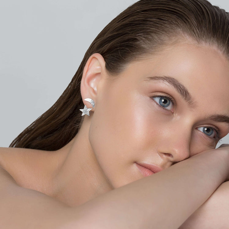 🌙⭐ Ohrstecker Ear Jackets "Stern & Mond" aus gehämmertem 925er Silber gefertigt.